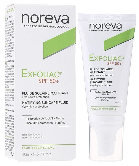 ضدآفتاب پوست چرب EXFOLIAC نوروا Mattifying Suncare Fluid SPF50+ از برند Noreva یک محصول محافظتکننده از پوست در برابر آفتاب است که به طور خاص برای پوستهای چرب و مستعد آکنه طراحی شده است. این محصول با فرمولاسیون منحصر به فرد خود، به مات کردن و تصفیه پوست کمک می کند و در عین حال از پوست در برابر اشعههای مضر UVA و UVB محافظت می کند.