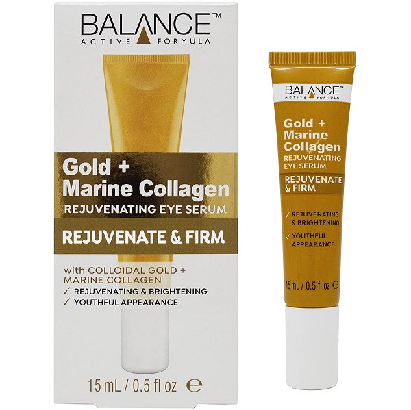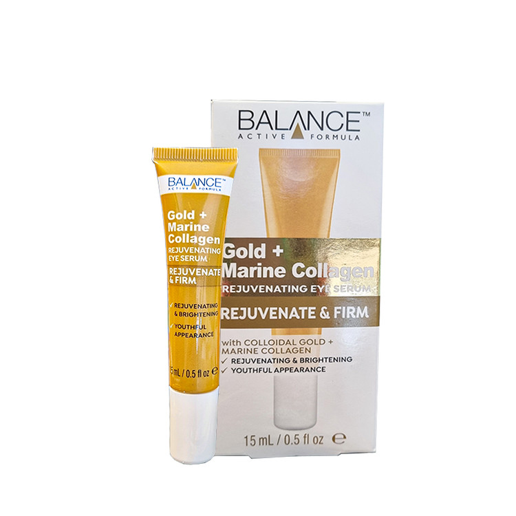 کرم دور چشم گلد بالانس حاوی طلا و کلاژن دریایی (Balance Gold Collagen Rejuvenating Eye Serum) محصولی از برند ساخت کشور انگلیس می باشد. این کرم حاوی کلاژن دریایی و طلای کلوئیدی (Colloidal) میباشد که ترکیبی جوانساز و بسیار موثر است. کرم دور چشم گلد بالانس جوانساز، ترمیم کننده و پلامپر (پر کننده چروکها از داخل) میباشد که تاثیر مستقیم روی درمان چروک، تیرگی و افتادگیهای دور چشم میگذارد. ذرات طلای به کار رفته در این کرم به خوبی سطح رطوبت پوست دور چشم را افزایش داده و منجر به کاهش تیرگی دور چشم میشود. کلاژن دریایی موجود در آن باعث ترمیم و پر شدن چروکهای پوست از داخل میشود.